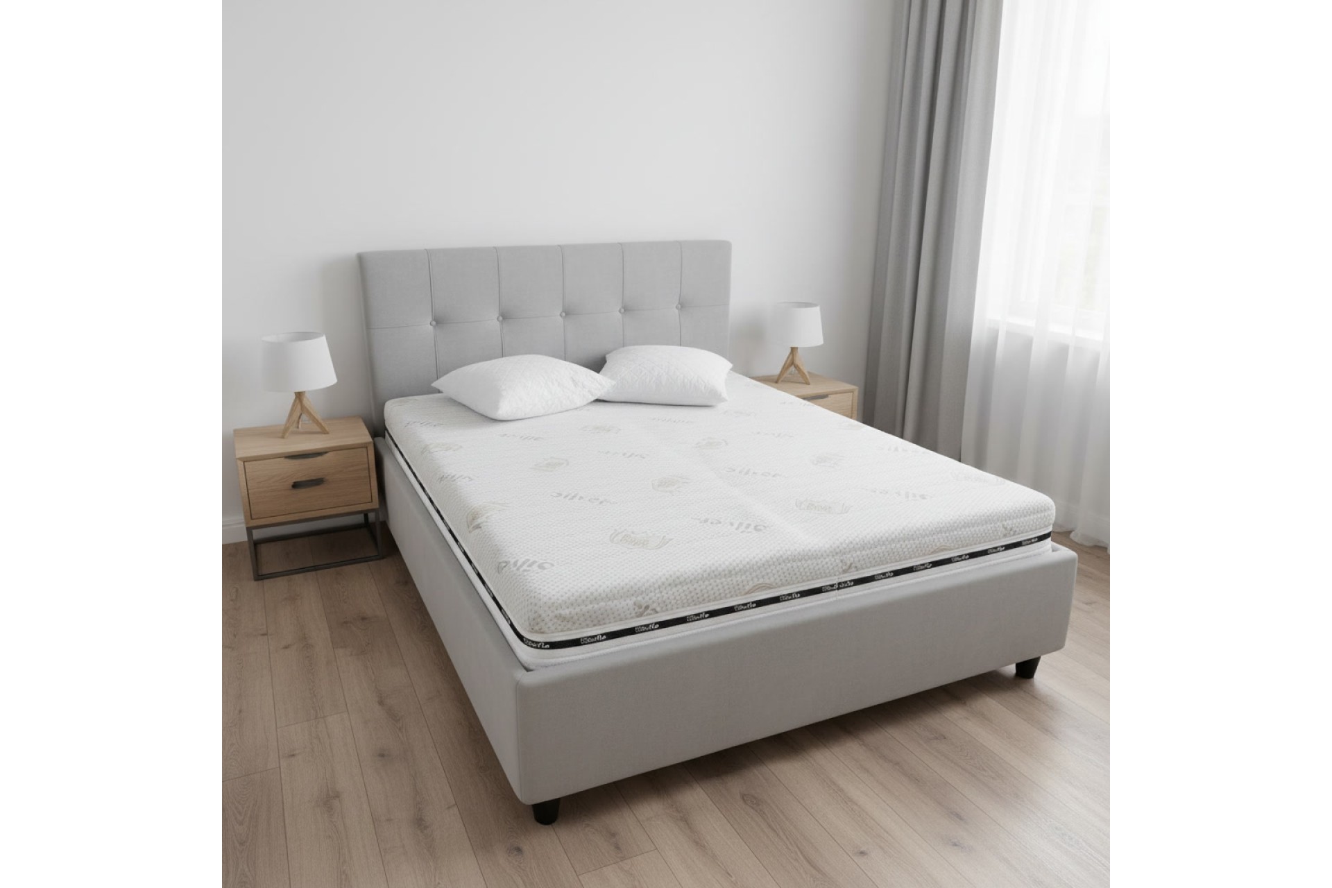 • Soluție completă 3-în-1 – Pat tapitat, saltea memory și perne CADOU.