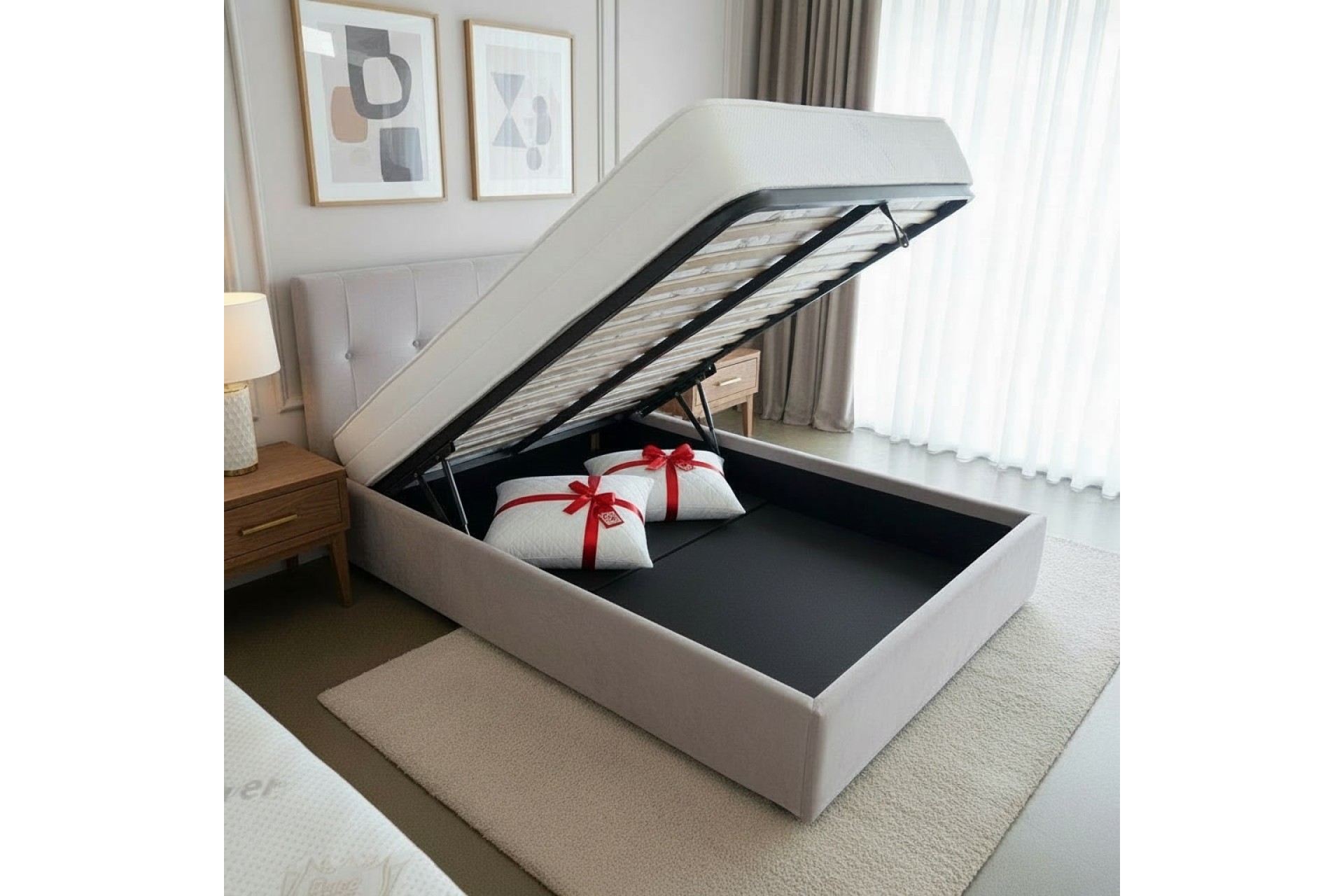 • Spațiu de depozitare generos – Ladă inclusă sub întreaga suprafață a patului.