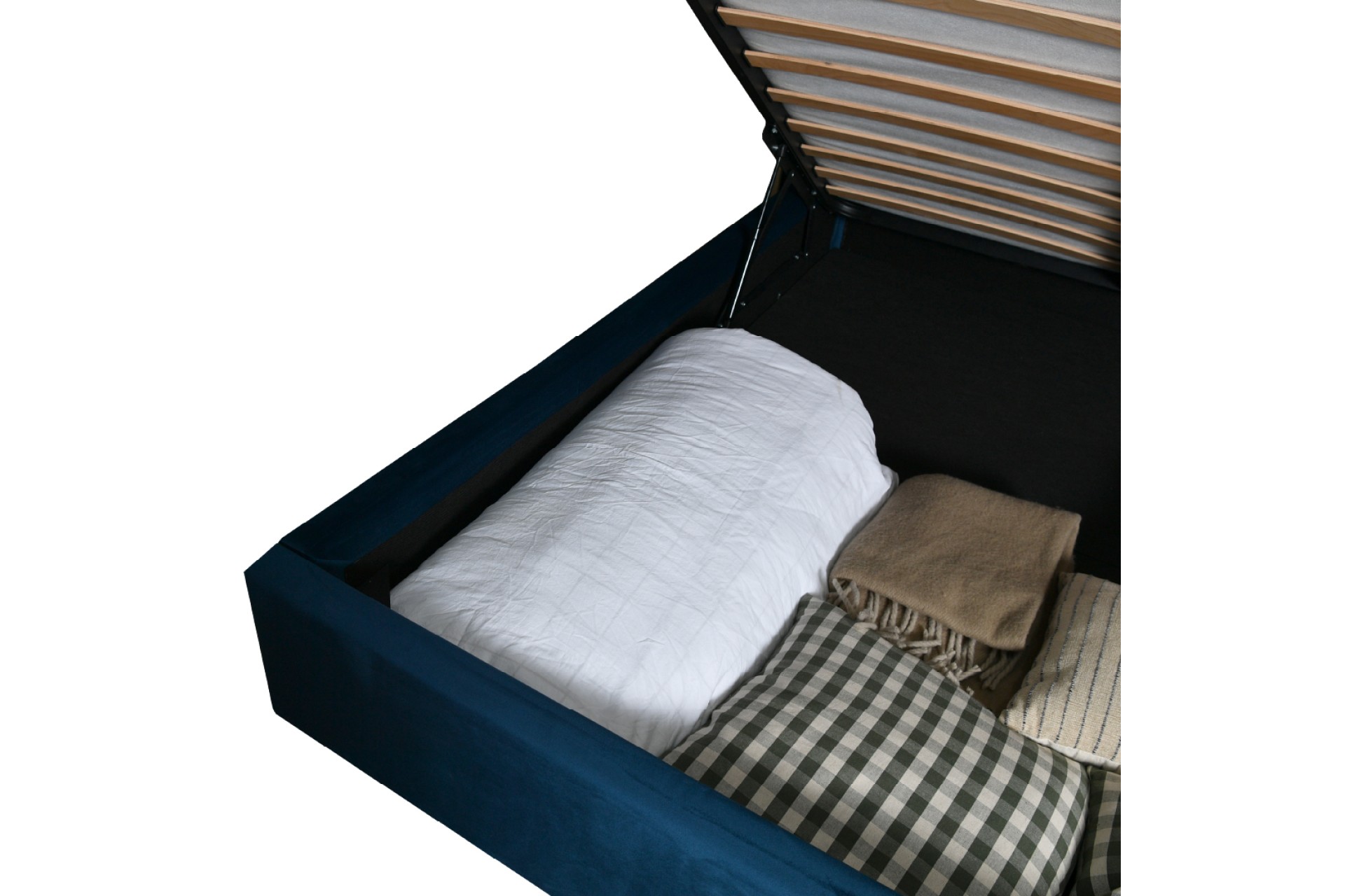 Cadrul patului este solid, prevăzut cu somieră metalică rabatabilă, cu lamele din fag. Accesul la zona de depozitare a patului Chester este foarte ușor, somiera fiind acționată de pistoane cu gaz, care preiau greutatea saltelei. Spațiul de depozitare este generos – ideal pentru lenjerii, pături sau haine de sezon.
