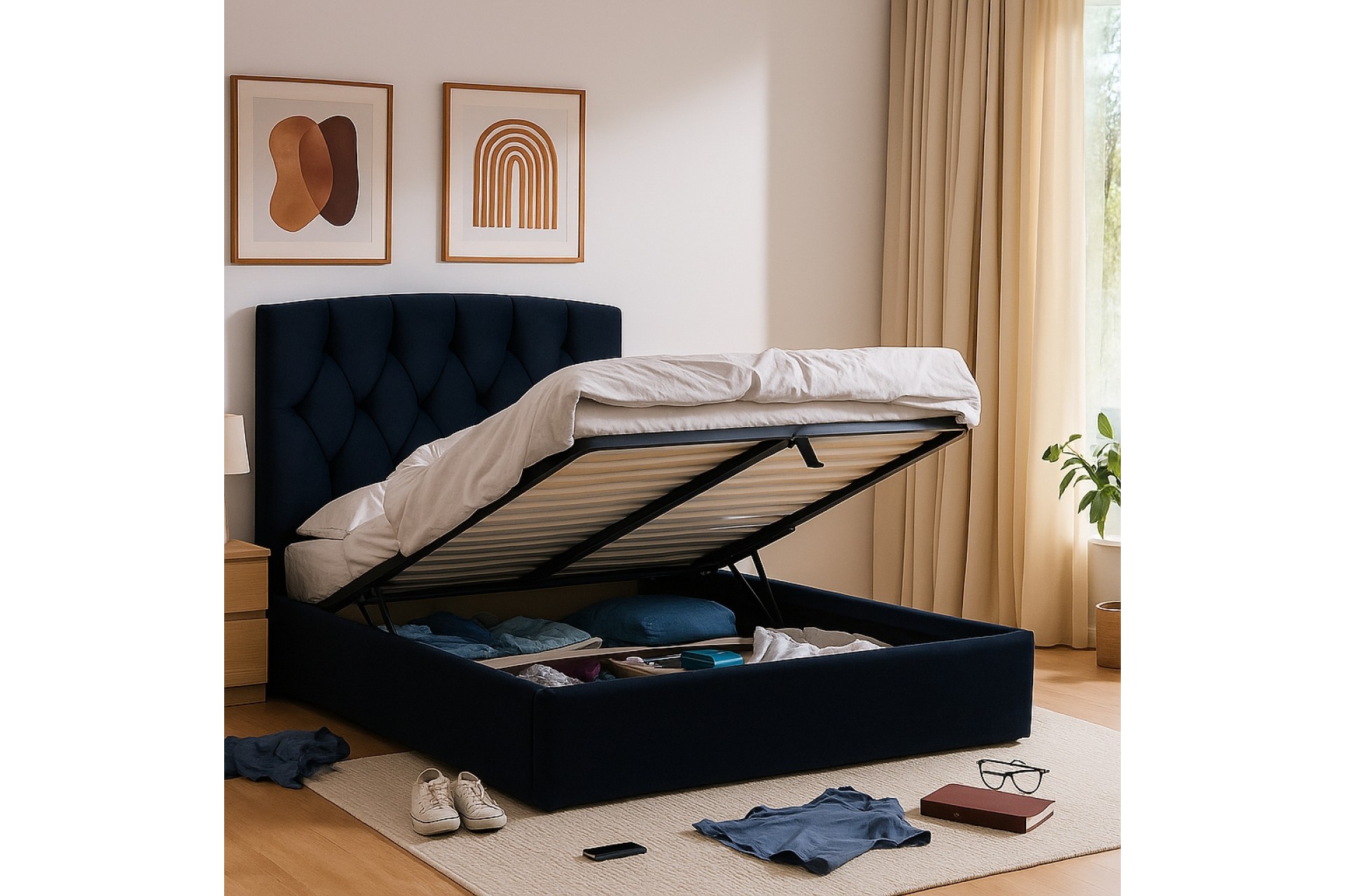 Cadrul patului este solid, prevăzut cu somieră metalică rabatabilă, cu lamele din fag. Accesul la zona de depozitare a patului Chester este foarte ușor, somiera fiind acționată de pistoane cu gaz, care preiau greutatea saltelei. Spațiul de depozitare este generos – ideal pentru lenjerii, pături sau haine de sezon.