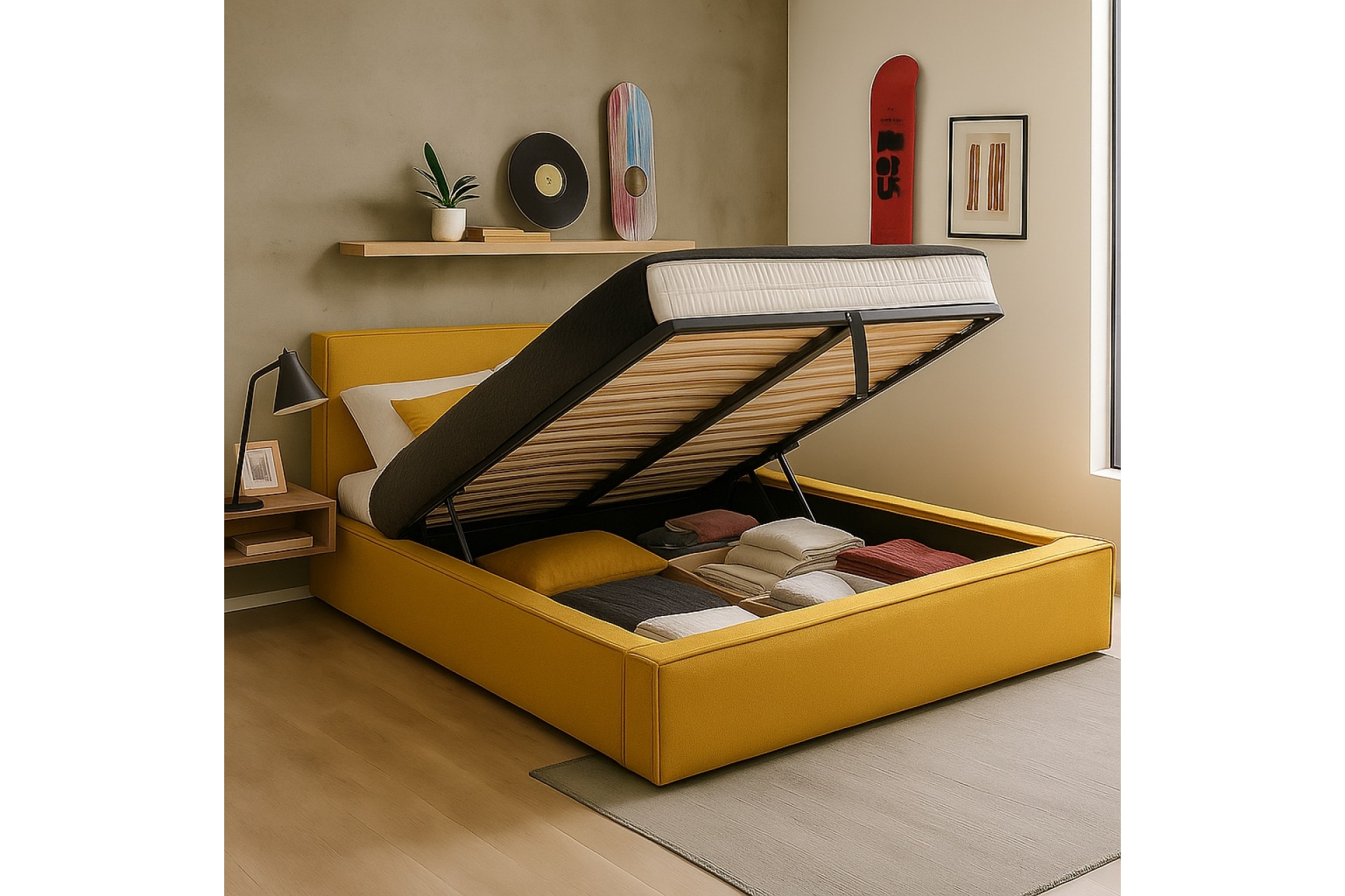 Sub aspectul său elegant, patul Tudor ascunde un avantaj practic esențial: un spațiu de depozitare generos, amplasat sub somiera rabatabilă. Accesul la spațiul de sub saltea se face simplu și sigur, printr-un mecanism de ridicare cu pistoane pe gaz, care permite deschiderea fără efort. Acest spațiu este ideal pentru depozitarea lenjeriilor, pilotelor, pernelor sau chiar a obiectelor voluminoase, ajutându-te să menții ordinea în dormitor fără să ocupi spațiu suplimentar.