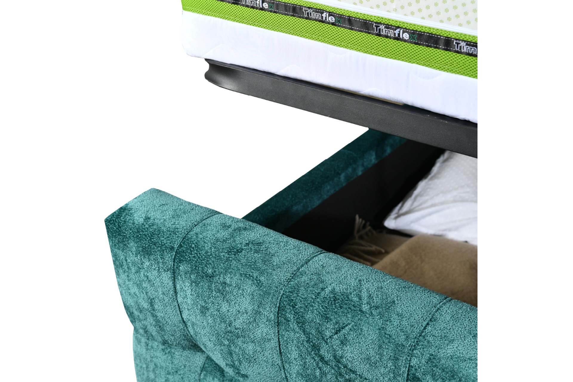 Patul AMOS NEW nu oferă doar design – ci și soluții practice pentru organizare. Sub somiera rabatabilă din metal cu lamele din lemn stratificat de fag, se ascunde un compartiment spațios, ideal pentru organizarea discretă a lenjeriilor, păturilor sau altor obiecte voluminoase. Mecanismul de ridicare format din pistoane pe gaz este conceput pentru a oferi acces facil și o utilizare îndelungată.